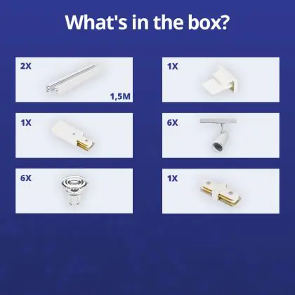 Beschrijving Complete Set 1-Fase Rail 3 Meter Wit | incl. 6x Spot + GU10 2700K 3W Dimbaar + Eindkap, Voedingsconnector en I-Verbindingsstuk