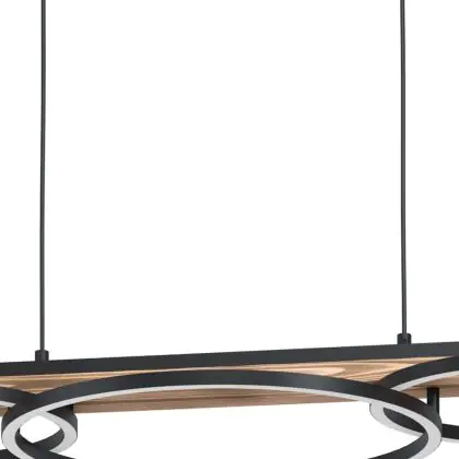 Beschrijving Eglo Pendelarmatuur Boyal Hout Zwart, Roestig 40.5W 3600lm - 830 Warm Wit | Dimbaar