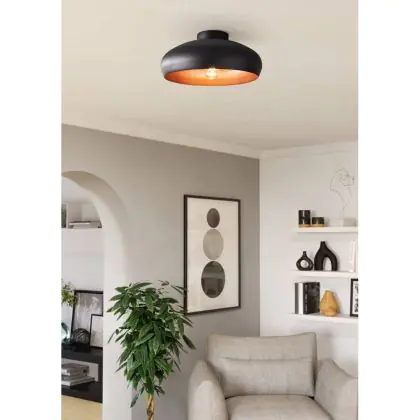 Beschrijving Eglo Plafondlamp Mogano Zwart, Koper | Geschikt voor E27