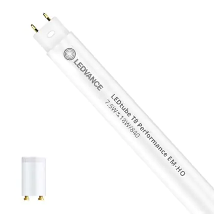 Beschrijving Ledvance LED Buis T8 Performance (EM/Mains) High Output 7.5W 1100lm - 840 Koel Wit | 60cm - Dimbaar - Vervangt 18W