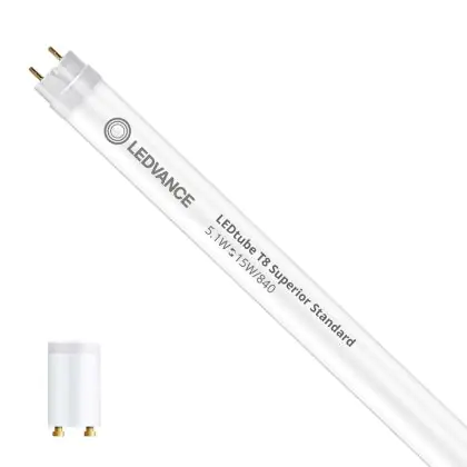 Beschrijving Ledvance LED Buis T8 Superior (EM/Mains) Standard Output 5.1W 900lm - 840 Koel Wit | 44cm - Vervangt 15W