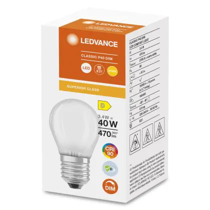 Beschrijving Ledvance Superior Classic LED E27 Kogel Mat 3.4W 470lm - 927 Zeer Warm Wit | Dimbaar - Beste Kleurweergave