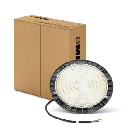 Productiehallen, stallen, loodsen en andere ruimtes kunnen zo groot van omvang zijn dat het niet volstaat om met slechts één lichtbron te verlichten. Hoe handig is het dan als LED high bays in groepen kunnen worden bediend? Dat als je binnenloopt, de lichtbronnen vanzelf aanspringen en weer uitgaan zodra je de ruimte of zone verlaat? Dit is eenvoudig te realiseren met een DALI LED high bay. Bovendien heb je de mogelijkheid om de lichtbronnen op hetzelfde niveau te dimmen. Natuurlijk kun je ook kiezen voor een standaard dimbaar armatuur. Is deze high bay dimbaar? Niet Dimbaar.
