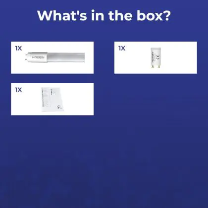 Deze Noxion LED TL buis heeft een Lumen / Watt efficiëntie van lm/W. Dit is de waarde die je verkrijgt door de lichtopbrengst (2100 Lumen) te delen door het wattage (14W) van deze lichtbron. Hoe weet je of jouw lichtbron een goede efficiëntie heeft? In dit geval ligt de lm/W waarde boven de 65. Je kunt er ook voor kiezen om een LED geïntegreerd TL armatuur te kopen. Hierbij heb je de keuze uit diverse (waterdichte) LED montagebalken, die in een divers aantal Lumen verkrijgbaar zijn. Een (dimbaar) LED paneel is ook een slimme optie, met name voor ruimtes met een systeemplafond (eenvoudige installatie) en kantoren (UGR<19 varianten).