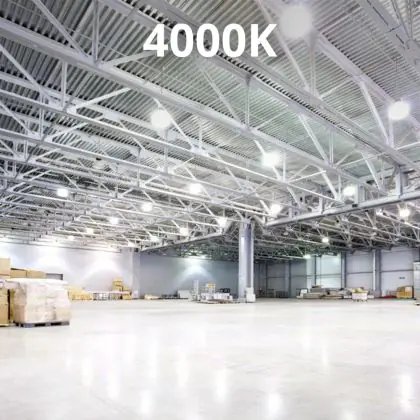 Deze LED High-bay bezit een enorme lichtopbrengst van 24000 lumen! Dit hoge aantal laat zien dat een armatuur zoals deze ook vanaf een grote hoogte nog steeds zijn werk doet. Hang je een High-bay armatuur zoals deze in een ruimte met lagere plafonds, dan is de hoeveelheid licht simpelweg te krachtig en te fel. Met als gevolg dat wanneer mensen in het licht kijken, ze direct worden verblind. Vanaf hoge plafonds (6 tot 14 meter) is dat een ander verhaal. Ook niet onbelangrijk om op te letten is de kleurtemperatuur. Deze is bij dit product: 4000K - Koel Wit. Twijfel je over de juiste kleurtemperatuur voor een grote oppervlakte? Kies dan voor koel wit (4000K). Deze lichtkleur heeft een natuurlijke tint en houdt werknemers in productie-omgevingen alert.