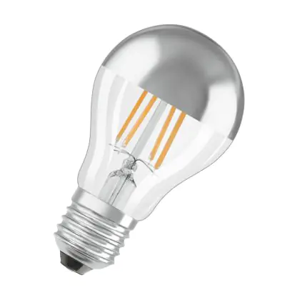 Beschrijving Osram Classic LED E27 Peer Filament Spiegel Zilver 4W 400lm - 827 Zeer Warm Wit | Vervangt 35W