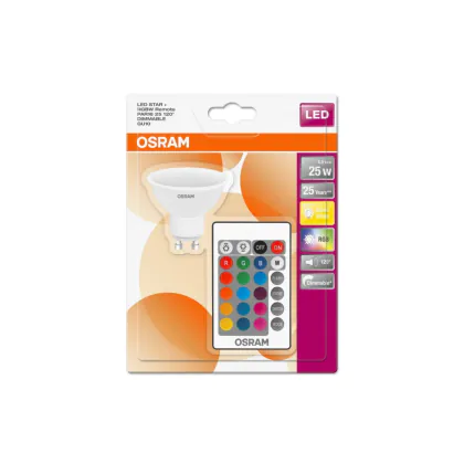 Beschrijving Osram Parathom Retrofit LED Spot GU10 PAR16 5W 250lm 120D - 827 Zeer Warm Wit | RGBW - Dimbaar - Afstandsbediening - Vervangt 25W