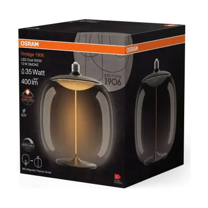 Beschrijving Osram Vintage 1906 LED E27 Special Filament Smoke 12W 400lm - 818 Zeer Warm Wit | Dimbaar - Vervangt 40W