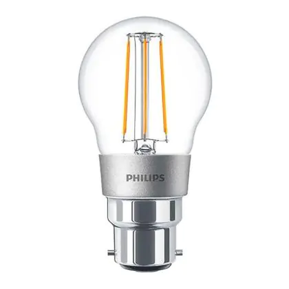 Beschrijving Philips Classic LED Lustre B22 Kogel Filament Helder 4.5W 470lm - 827 Zeer Warm Wit | Dimbaar - Vervangt 40W