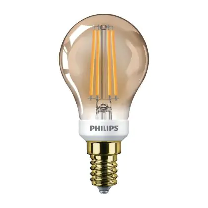 Beschrijving Philips Classic LED Lustre E14 Kogel Filament Goud 5W 350lm - 822 Zeer Warm Wit | Dimbaar - Vervangt 35W