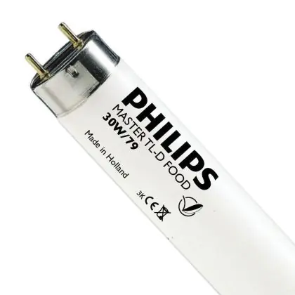 De TL-D Food is speciaal ontwikkeld voor verlichting van voedingsmiddelen. De buizen zijn eenvoudig in uw armatuur te plaatsen dankzij de G13 lampvoet. De TL-buizen hebben een lengte van 90 cm.