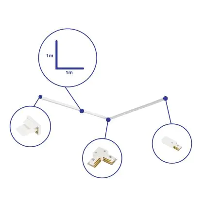 Beschrijving Rail Set 1-Fase L 1 x 1 Meter Wit | incl. Eindkap, Voedingsconnector en L -Verbindingsstuk