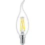 In ons assortiment E14 LED lampen valt er genoeg te kiezen. Vooral qua kleurtemperatuur (Kelvin) en vorm. Deze lamp heeft de volgende kleurtemperatuur: 2200K - 2700K Dim to Warm. Hoe lager de kleurtemperatuur, hoe warmer het licht. Wil je ergens sfeer toevoegen? Kies dan voor een E14 LED lamp van 1800 tot 2700 Kelvin. Hoge kleurtemperaturen zoals 4000 en 6500 Kelvin zijn op hun beurt beter geschikt als functionele verlichting. De vorm van dit product is: Kaars met gebogen punt. Op zoek naar een ander type E14 LED lamp? Gebruik dan het zoekfilter 'vorm' aan de linkerkant van deze pagina. Ook handig om te weten is de lichtopbrengst van deze lamp. Die is 340 lumen.