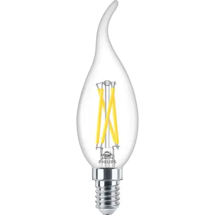 Beschrijving Voordeelpak 10x Philips MASTER LED E14 Gebogen-tip Kaars Filament Helder 2.5W 340lm - 922-927 Dim To Warm | Beste Kleurweergave - Dimbaar - Vervangt 25W