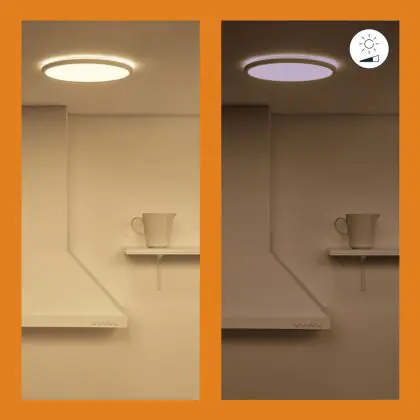Denk ook goed na over de plaats waar je jouw nieuwe LED plafondverlichting wil ophangen, in combinatie met de juiste kleurtemperatuur. Zo geven 2700 Kelvin (extra warm wit) en 3000 Kelvin (warm wit) wat zachter en aangenamer licht. Deze tint is daarom goed geschikt voor gezellige buitenplaatsen of algemene ruimtes zoals een gang, lift, hal of overloop. 4000 Kelvin (koel wit) oogt qua tint wat feller en frisser en is daarom niet echt geschikt als sfeerverlichting, maar vooral als functionele verlichting. Denk daarbij aan vergaderzalen, gymzalen, werkkamers etc. Deze LED plafondlamp heeft als kleurtemperatuur: 2700K - 6500K Afstembaar Wit. Wist je dat het online kopen van LED plafondlampen bij Lampdirect als zakelijke klant extra voordelen met zich meebrengt? Lees er hier alles over.